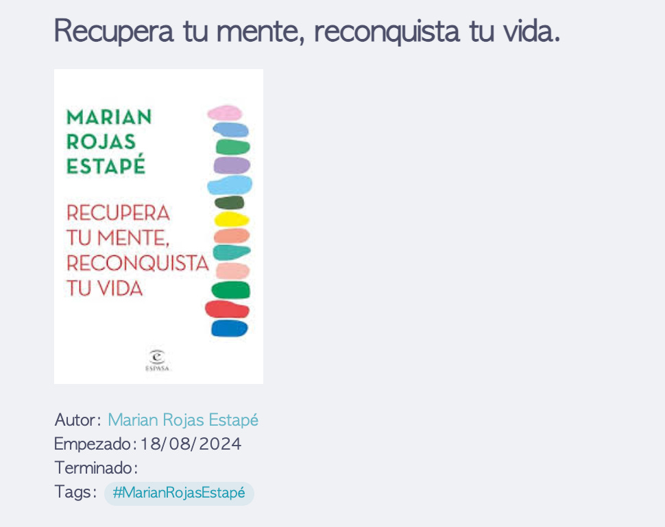 Ahora mismo estoy leyendo un libro de Marian Rojas Estapé y sobre el mismo voy tomando notas que creo, me van a resultar útiles en un futuro. Yo leo y subrayo en el libro y luego me lo paso tranquilamente a Obsidian, y creo enlaces a notas que no he creado aun pero que puedo seguir investigando en un futuro, como autores a los que hace referencia en su libro etcétera. De este modo se que en dos años, o en el tiempo que quiera, tendré eso accesible sin tener que volver a recurrir a leerme todo el libro de nuevo.