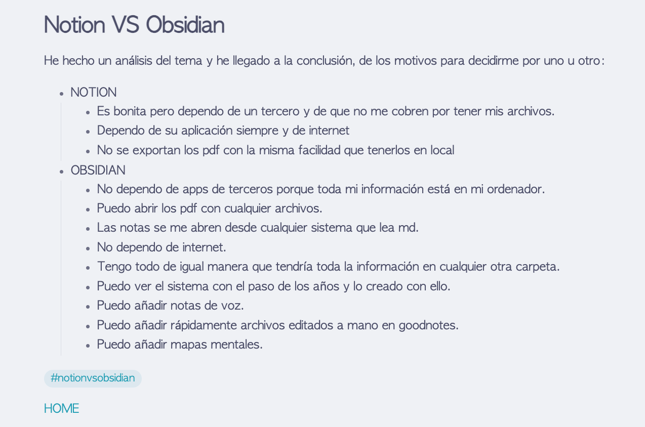 Que me llevó a elegir Obsidian frente a Notion u otros sistemas.