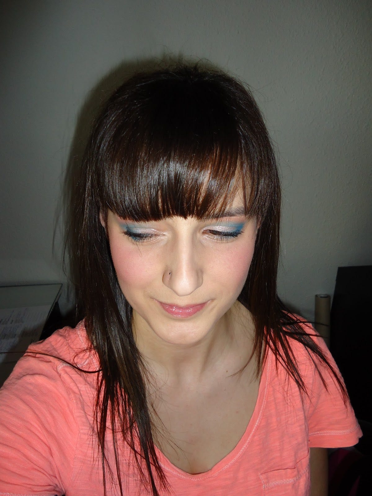 Esta semana os dejé el vídeo en el canal de un maquillaje muy sencillo en azules. Al hacer las fotos me di cuenta de que tenía un ojo mas marcado que el otro, pero bueno, no es nada que no pueda arreglar jejeje.